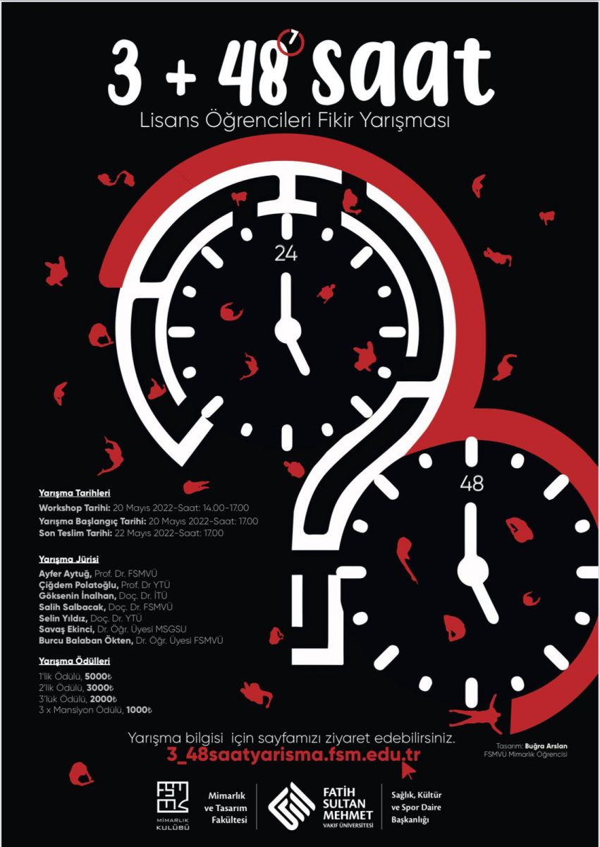 Fatih Sultan Mehmet Vakıf Üniversitesi tarafından düzenlenen “3+48 SAAT” Öğrenci Fikir Yarışması ile günümüz üniversite kampüslerinde yaşamsal sorunlara çözüm aranması, hızlı karar alabilmek, tasarımcı düşünme pratiği ve farklı ortamlarda sunma becerisini geliştirmek amaçlanıyor.