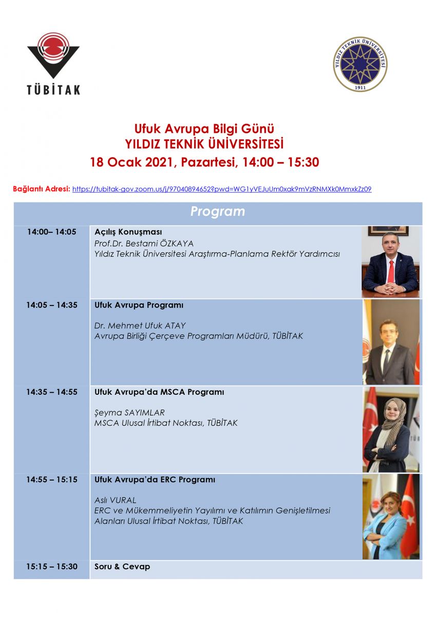 Yıldız Teknik Üniversitesi ve TÜBİTAK tarafından gerçekleştirilen Ufuk Avrupa Bilgi Günü Webinar Etkinliğine aşağıdaki link aracılığıyla katılım sağlayabilirsiniz.