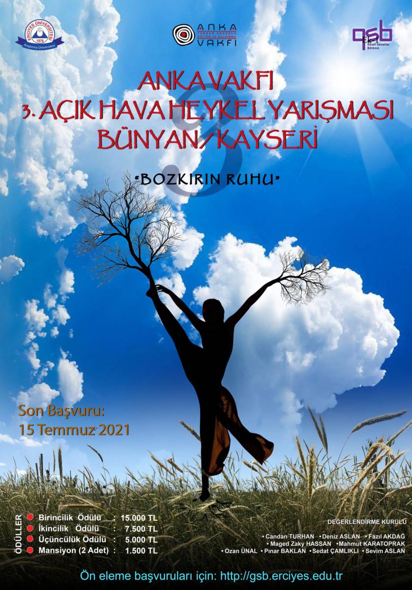 Erciyes Üniversitesi Rektörlük Güzel Sanatlar Bölümü tarafından açılan, doğa, tarım, insan ve sanat temalı heykel yarışmasına ilk başvuru için son tarih 15 Temmuz 2021.