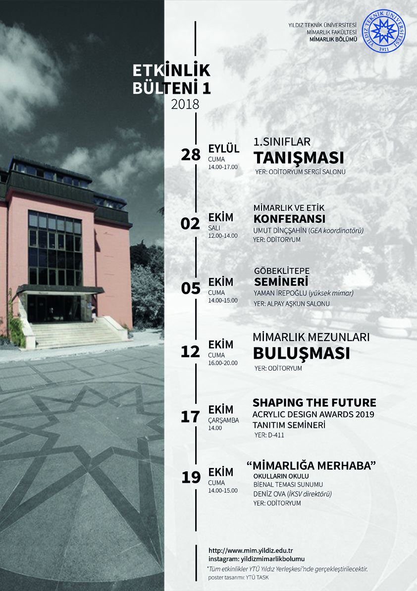 Etkinlik Bülteni 1: Eylül - Ekim 2018 | YTÜ Mimarlık Bölümü Ana içeriğe atla