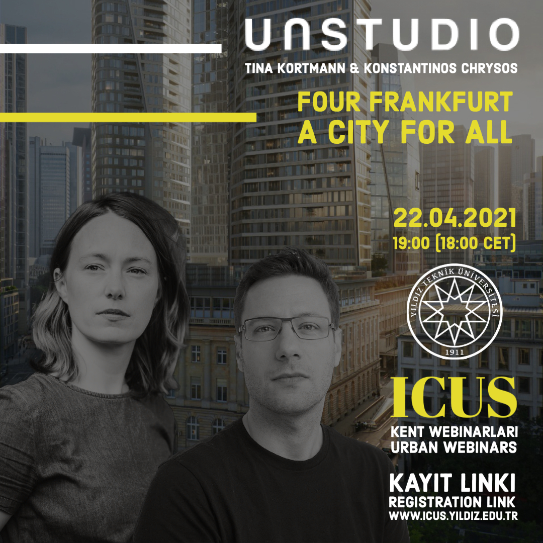 İCUS Kent Webinarları serisinin Nisan ayı ikinci konuğu Four Frankfurt A City For All başlıklı konuşmalarıyla UNSTUDIO'dan Tina Kortmann ve Konstantinos Chrysos olacaktır. 22 Nisan Perşembe 19:00'da başlayacak etkinliğe aşağıdaki link aracılığıyla kayıt yapabilirsiniz.