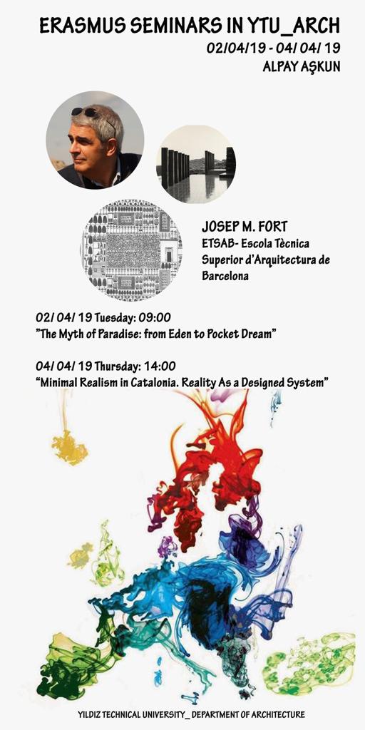 Josep M. Fort (Barselona, ETSAB) Minimal Realism in Catalonia, Reality as a Designed System isimli semineri 4 Nisan 2019 günü Alpay Aşkun'da düzenlenecektir.