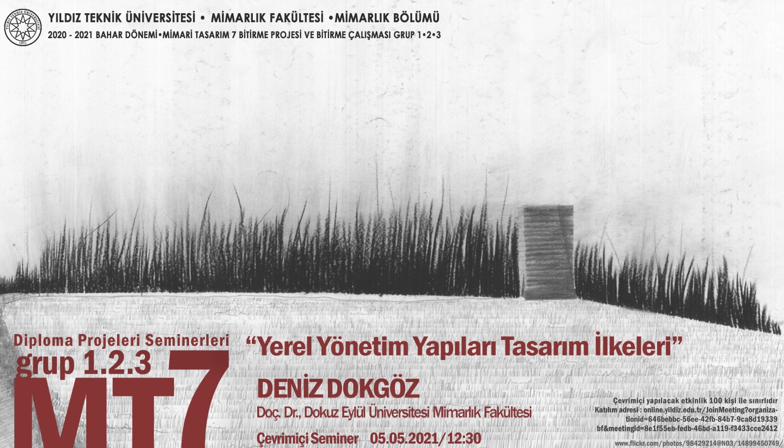 Mimari Tasarım 7 Grup 1-2-3 Diploma Seminerleri kapsamında 'Yerel Yönetim Yapıları Tasarım İlkeleri' başlıklı konuşmasıyla Doç. Dr. Deniz Dökgöz yer alacaktır. Söyleşiye aşağıdaki link aracılığıyla katılım sağlayabilirsiniz.